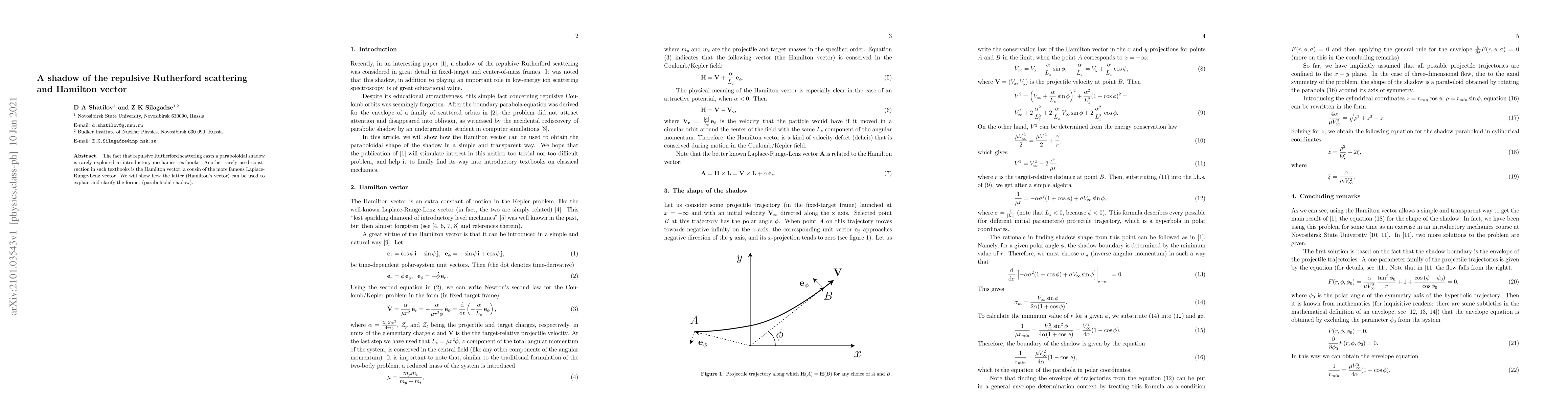 This paper reveals a connection between the paraboloidal shadow formed by repulsive Rutherford scattering and Hamilton's vector, a lesser-known concept in mechanics, offering a new perspective for understanding scattering phenomena.