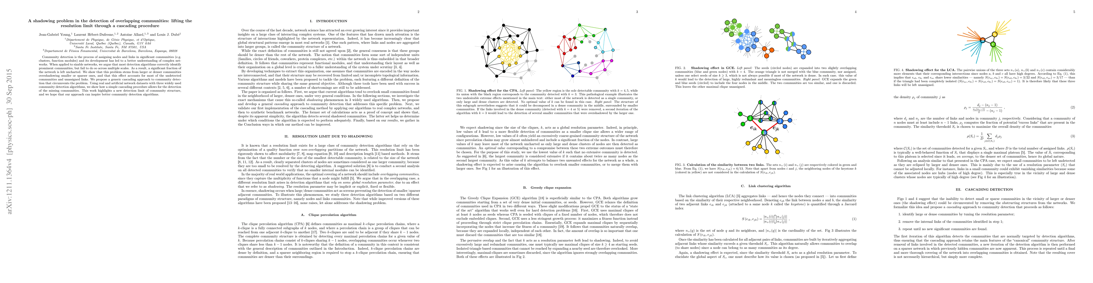 A new community detection algorithm detects hidden communities in large networks by using a cascading procedure to overcome the shadowing problem, allowing for more accurate identification of smaller and sparser groups.