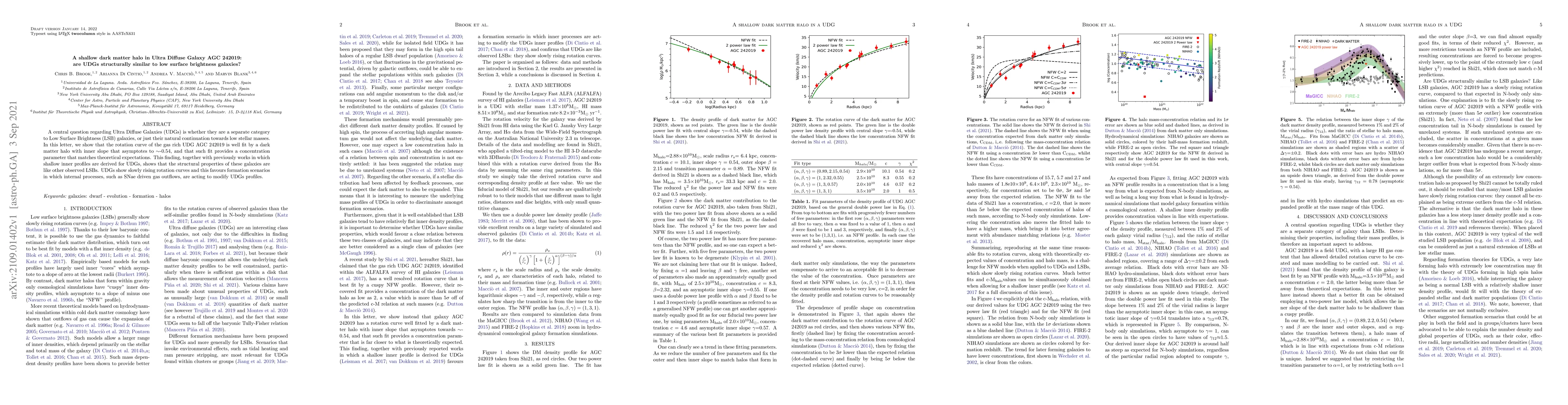 A central question regarding Ultra Diffuse Galaxies (UDGs) is whether they are a separate category to Low Surface Brightness (LSB) galaxies, or just their natural continuation towards low stellar masses. In this letter, we show that the rotation curve of the gas rich UDG AGC 242019 is well fit by a dark matter halo with inner slope that asymptotes to -0.54, and that such fit provides a concentration parameter that matches theoretical expectations. This finding, together with previously works in which shallow inner profiles are derived for UDGs, shows that the structural properties of these galaxies are like other observed LSBs. UDGs show slowly rising rotation curves and this favours formation scenarios in which internal processes, such as SNae driven gas outflows, are acting to modify UDGs profiles.