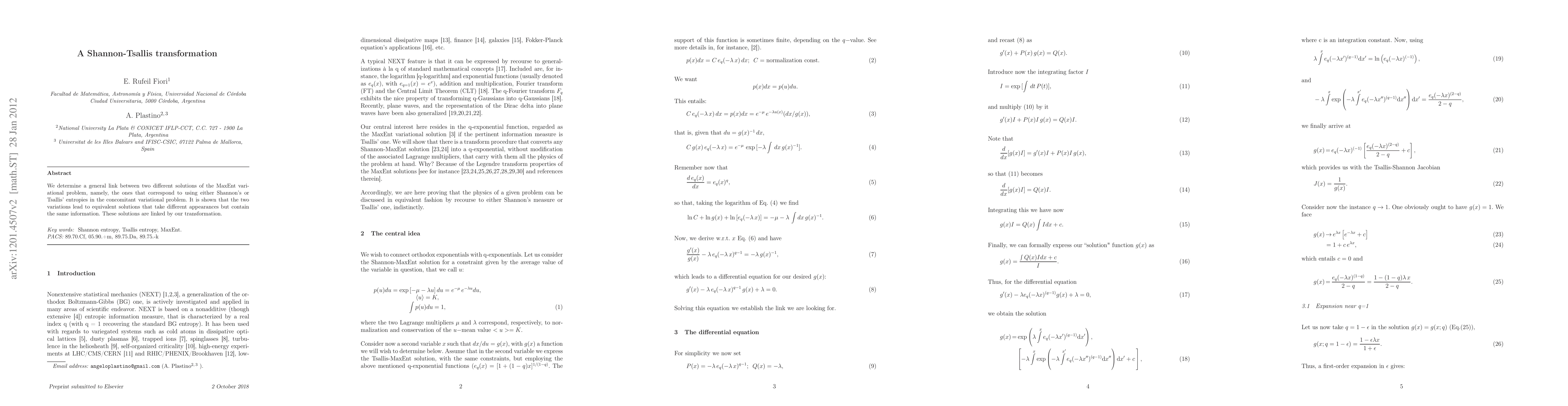 We determine a general link between two different solutions of the MaxEnt variational problem, namely, the ones that correspond to using either Shannon's or Tsallis' entropies in the concomitant variational problem. It is shown that the two variations lead to equivalent solutions that take different appearances but contain the same information. These solutions are linked by our transformation.