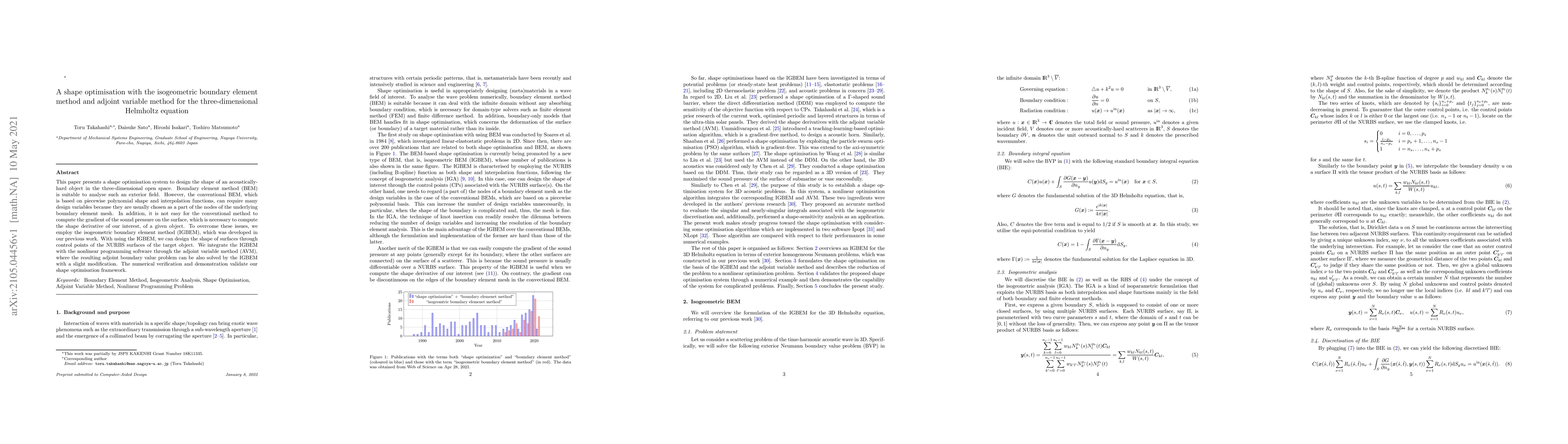 This paper presents a shape optimisation system to design the shape of an acoustically-hard object in the three-dimensional open space. Boundary element method (BEM) is suitable to analyse such an exterior field. However, the conventional BEM, which is based on piecewise polynomial shape and interpolation functions, can require many design variables because they are usually chosen as a part of the nodes of the underlying boundary element mesh. In addition, it is not easy for the conventional method to compute the gradient of the sound pressure on the surface, which is necessary to compute the shape derivative of our interest, of a given object. To overcome these issues, we employ the isogeometric boundary element method (IGBEM), which was developed in our previous work. With using the IGBEM, we can design the shape of surfaces through control points of the NURBS surfaces of the target object. We integrate the IGBEM with the nonlinear programming software through the adjoint variable method (AVM), where the resulting adjoint boundary value problem can be also solved by the IGBEM with a slight modification. The numerical verification and demonstration validate our shape optimisation framework.