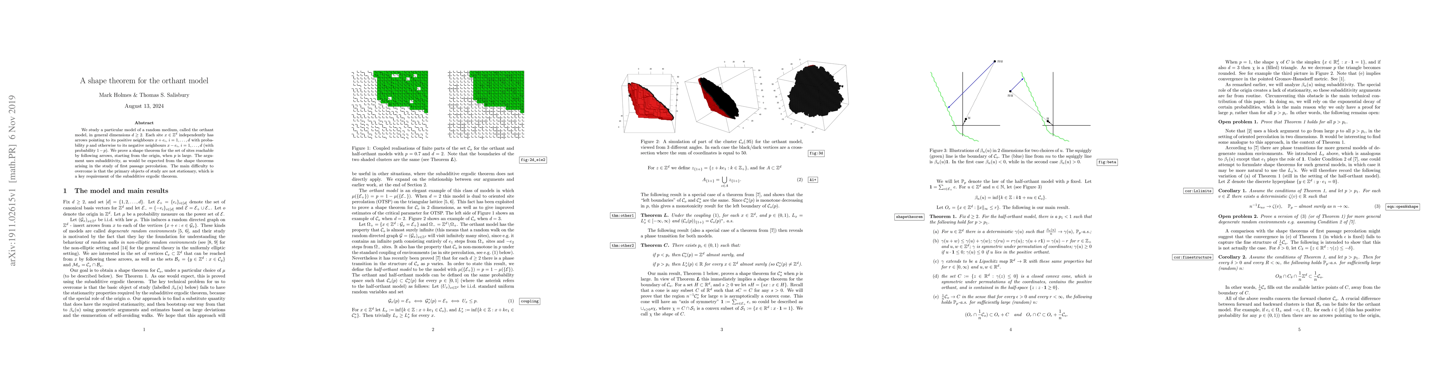 A research paper proves a shape theorem for a model of random medium in high dimensions, showing that the set of reachable sites follows a predictable pattern as probability increases. The proof uses subadditivity and overcomes the challenge of non-stationary objects.