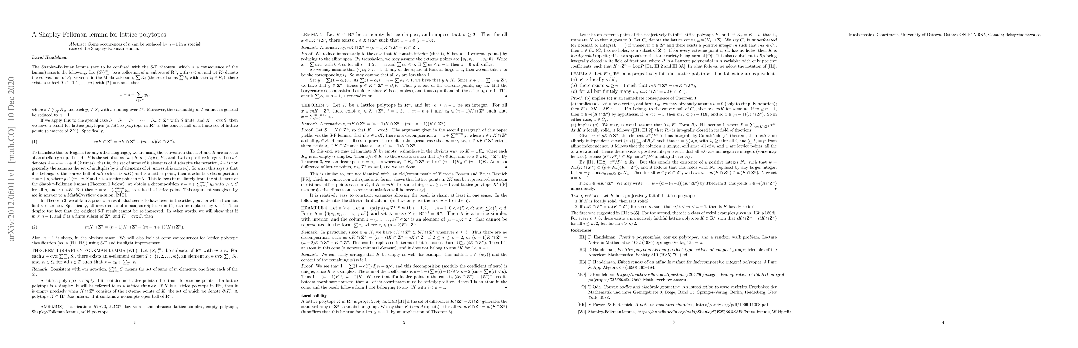 Summary: This paper explores a variant of the Shapley-Folkman lemma applicable to lattice polytopes, demonstrating that in certain scenarios, $n$ can be replaced by $n-1$ without altering the lemma's fundamental properties.
