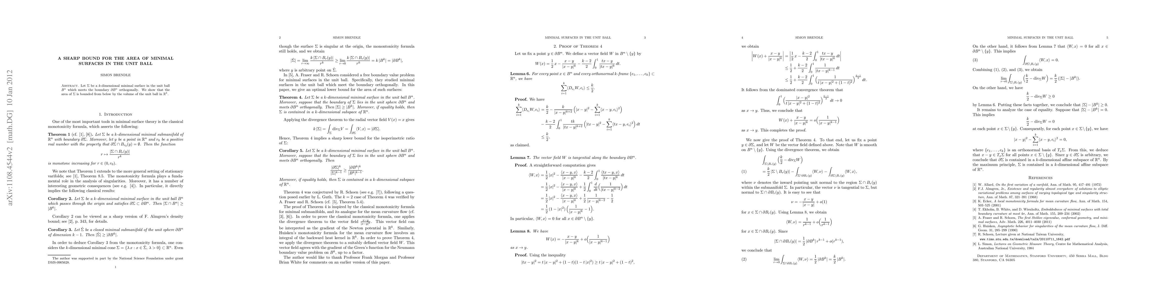 A new mathematical bound establishes a lower limit for the area of minimal surfaces within the unit ball in k-dimensional space, answering a question posed by renowned mathematician R. Schoen.