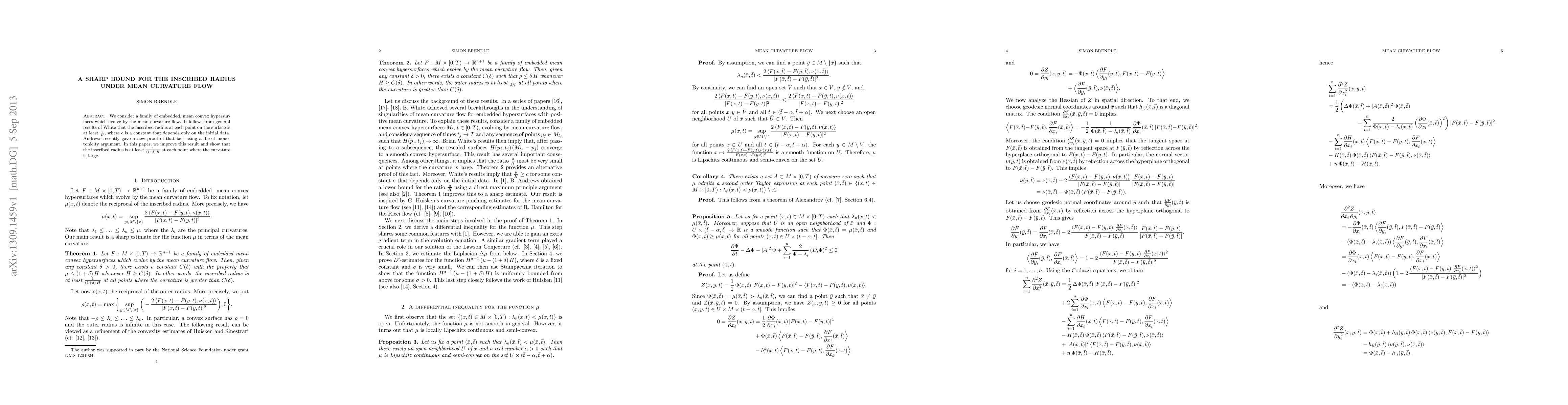 We consider a family of embedded, mean convex hypersurfaces which evolve by the mean curvature flow. It follows from general results of White that the inscribed radius at each point on the surface is at least $\frac{c}{H}$, where $c$ is a constant that depends only on the initial data. Andrews recently gave a new proof of that fact using a direct monotonicity argument. In this paper, we improve this result and show that the inscribed radius is at least $\frac{1}{(1+\delta) \, H}$ at each point where the curvature is large.