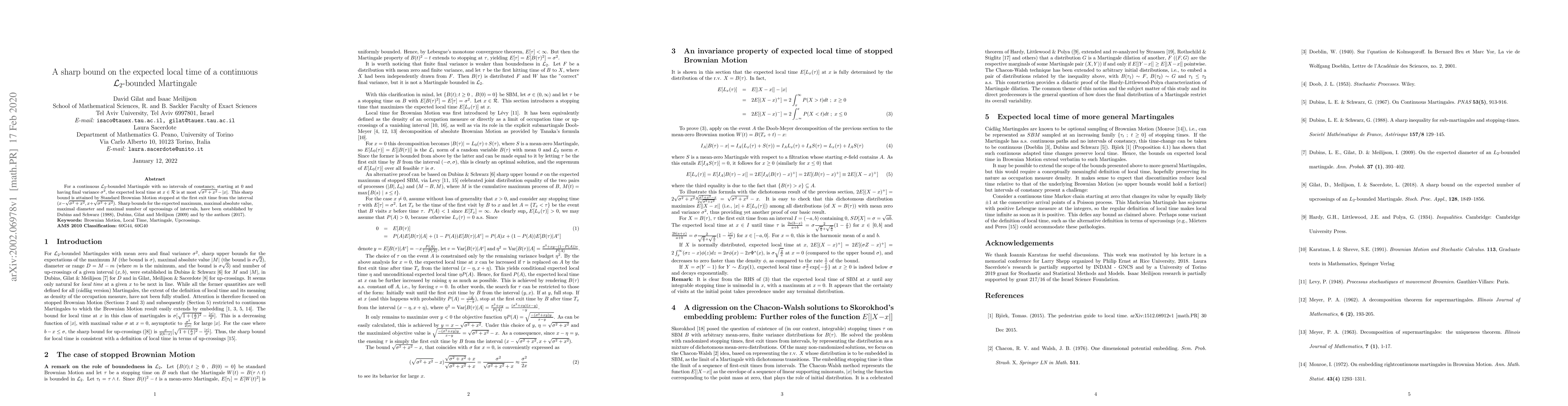 For a continuous ${\cal L}_2$-bounded Martingale with no intervals of constancy, starting at $0$ and having final variance $\sigma^2$, the expected local time at $x \in \cal{R}$ is at most $\sqrt{\sigma^2+x^2}-|x|$. This sharp bound is attained by Standard Brownian Motion stopped at the first exit time from the interval $(x-\sqrt{\sigma^2+x^2},x+\sqrt{\sigma^2+x^2})$. Sharp bounds for the expected maximum, maximal absolute value, maximal diameter and maximal number of upcrossings of intervals, have been established by Dubins and Schwarz (1988), Dubins, Gilat and Meilijson (2009) and by the authors (2017).