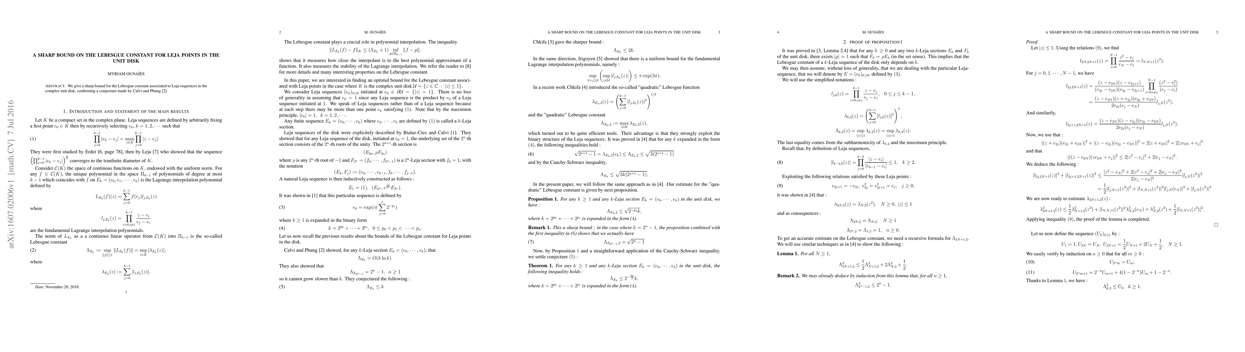 Researchers confirm a 2011 conjecture with a sharp bound on the Lebesgue constant for Leja points in the complex unit disk, improving understanding of polynomial approximation.