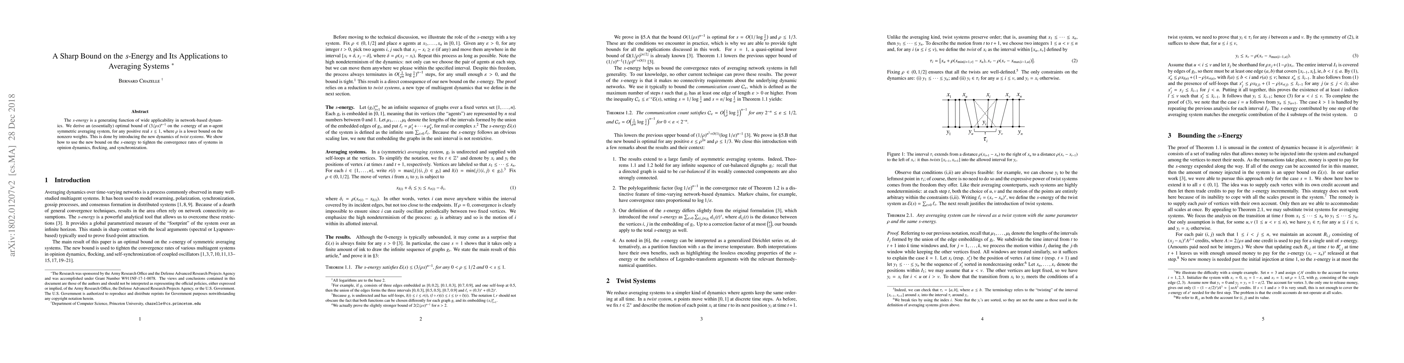 The {\em $s$-energy} is a generating function of wide applicability in network-based dynamics. We derive an (essentially) optimal bound of $(3/\rho s)^{n-1}$ on the $s$-energy of an $n$-agent symmetric averaging system, for any positive real $s\leq 1$, where~$\rho$ is a lower bound on the nonzero weights. This is done by introducing the new dynamics of {\em twist systems}. We show how to use the new bound on the $s$-energy to tighten the convergence rate of systems in opinion dynamics, flocking, and synchronization.