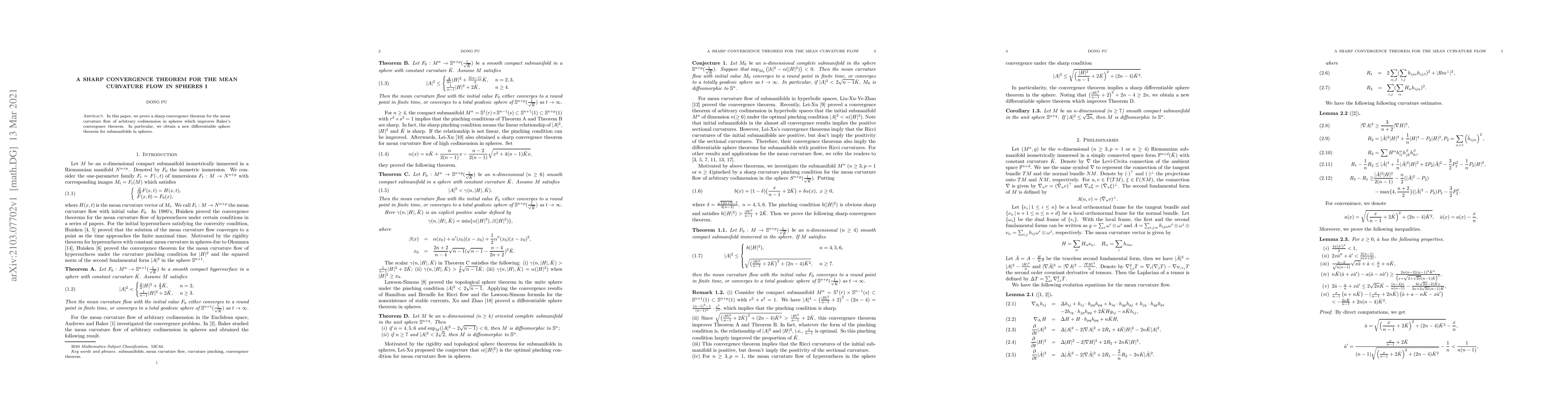 This paper establishes a sharp convergence theorem for mean curvature flow in spheres, surpassing Baker's previous results, and introduces a novel differentiable sphere theorem for submanifolds in spheres.