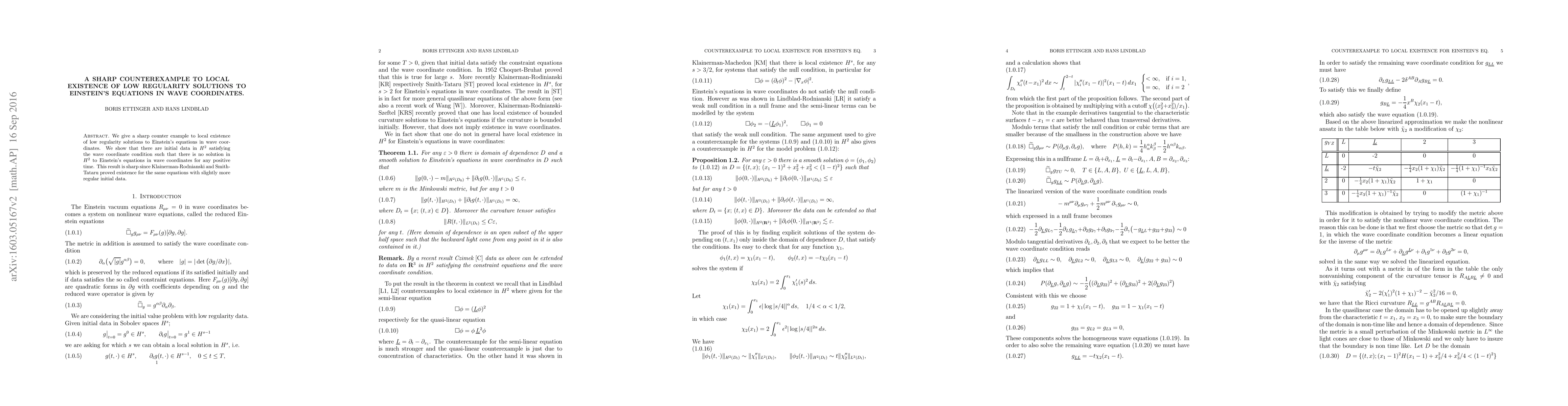 We are concerned with how regular initial data have to be to ensure local existence for Einstein's equations in wave coordinates. Klainerman-Rodnianski and Smith-Tataru showed that there in general is local existence for data in Sobolev spaces H^s with regularity s>2. We give an example of data in Sobolev spaces with regularity s=2 for which there is no local solution in this space.