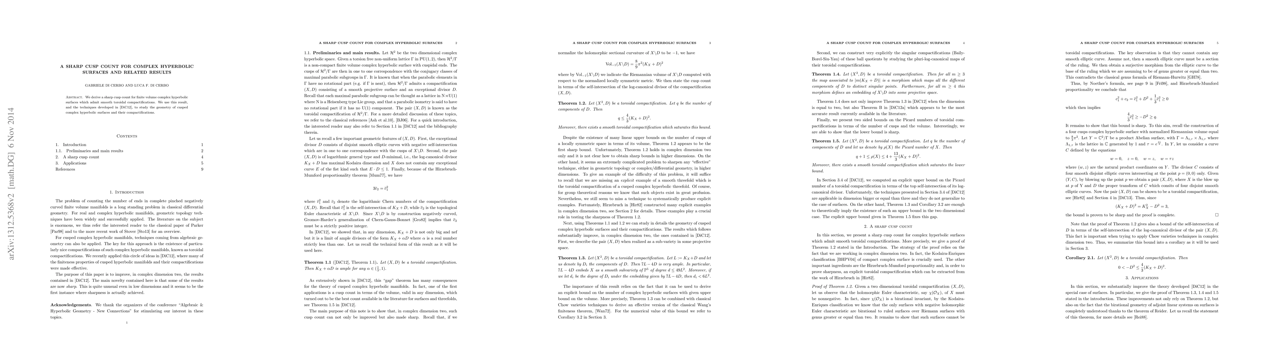 This paper derives a precise cusp count for finite volume complex hyperbolic surfaces with smooth toroidal compactifications and applies these findings to study the geometry of such surfaces and their compactifications, utilizing techniques from [DiC12].