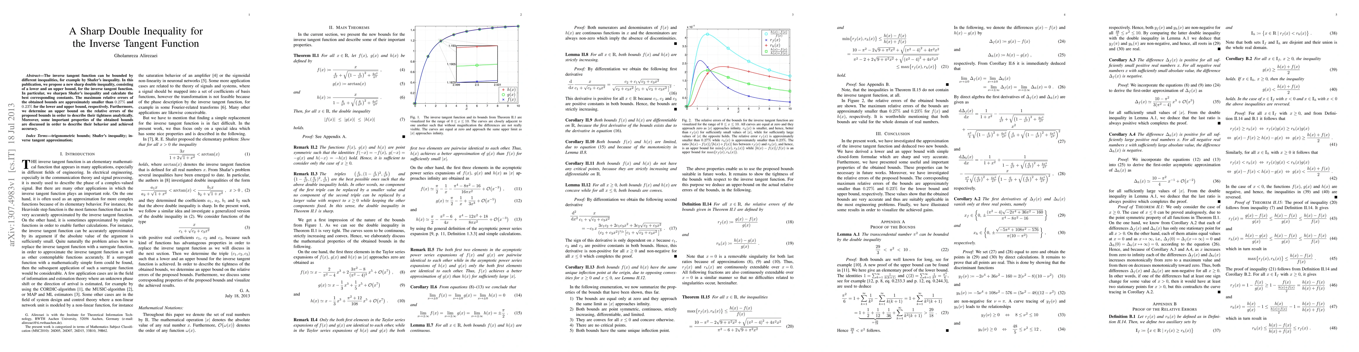 Researchers propose a new sharp double inequality for the inverse tangent function, sharpening Shafer's inequality with smaller relative errors of approximately 0.27% and 0.23%, offering tighter bounds for the function.