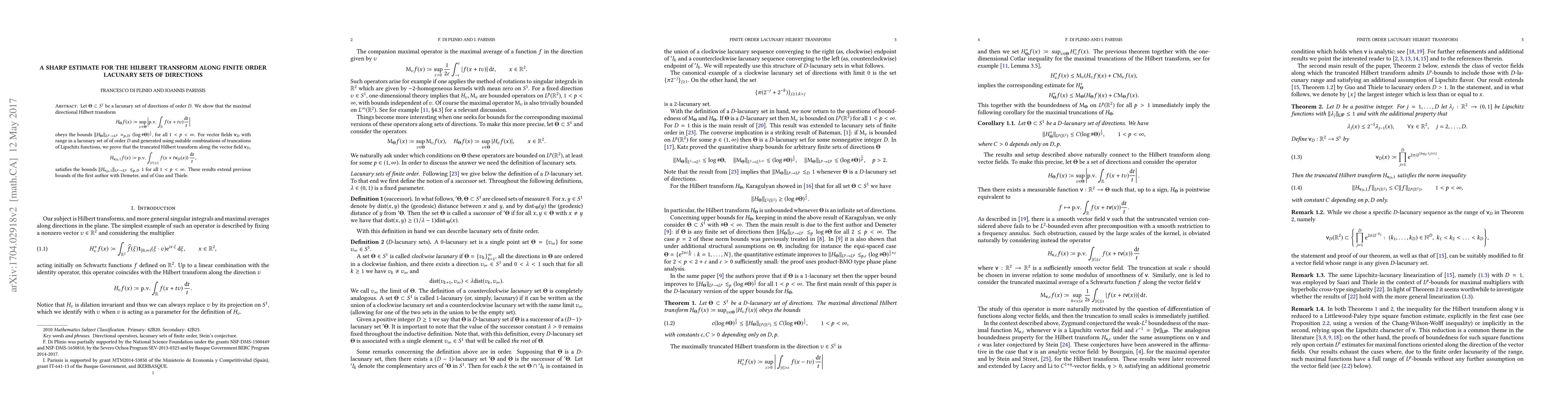 This paper establishes sharp $L^p$ norm estimates for the maximal directional Hilbert transform along lacunary sets of directions, showing comparability to $(\log\#{\mathbf{\Theta}})^\frac{1}{2}$. It also proves $L^p$-boundedness for truncated Hilbert transforms along vector fields derived from lacunary sets, extending previous results.
