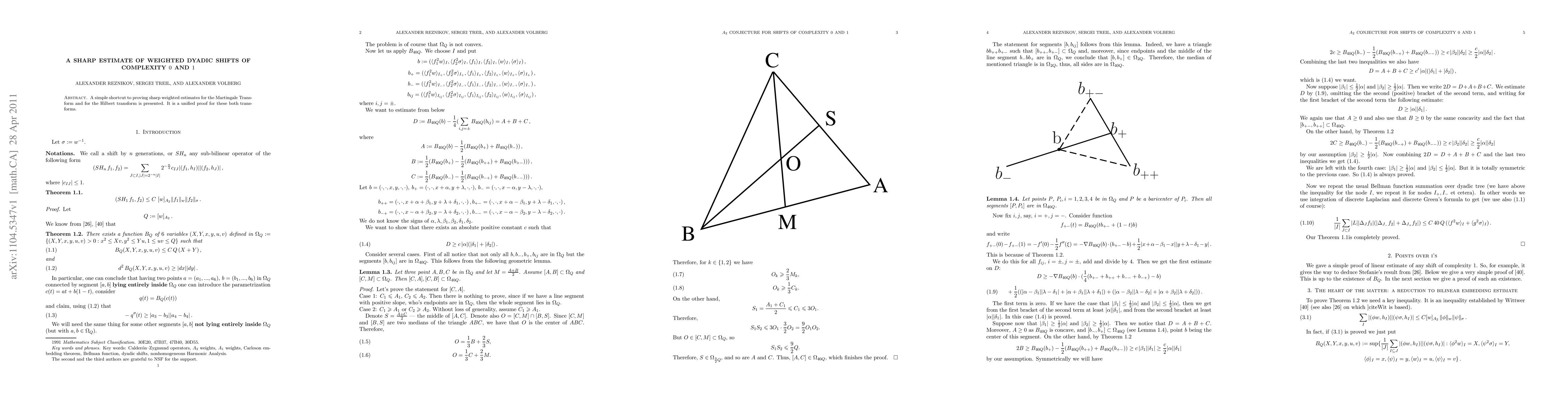 A simple shortcut to proving sharp weighted estimates for the Martingale Transform and for the dyadic shift of order 1 (and so for the Hilbert transform) is presented. It is a unified proof for these both transforms. Key words: Calder\on--Zygmund operators, $A_2$ weights, $A_1$ weights, Carleson embedding theorem, Bellman function, dyadic shifts, nonhomogeneous Harmonic Analysis.