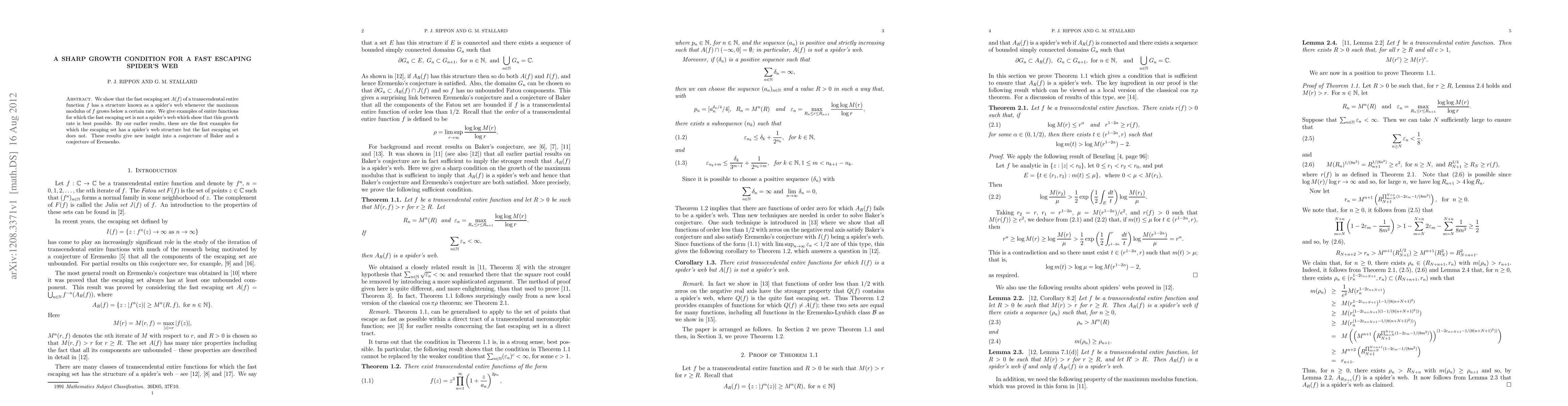 This paper demonstrates that a transcendental entire function's fast escaping set $A(f)$ exhibits a spider's web structure when the function's maximum modulus grows below a specific rate. It also provides examples proving that this growth rate is optimal, offering new insights into conjectures by Baker and Eremenko.