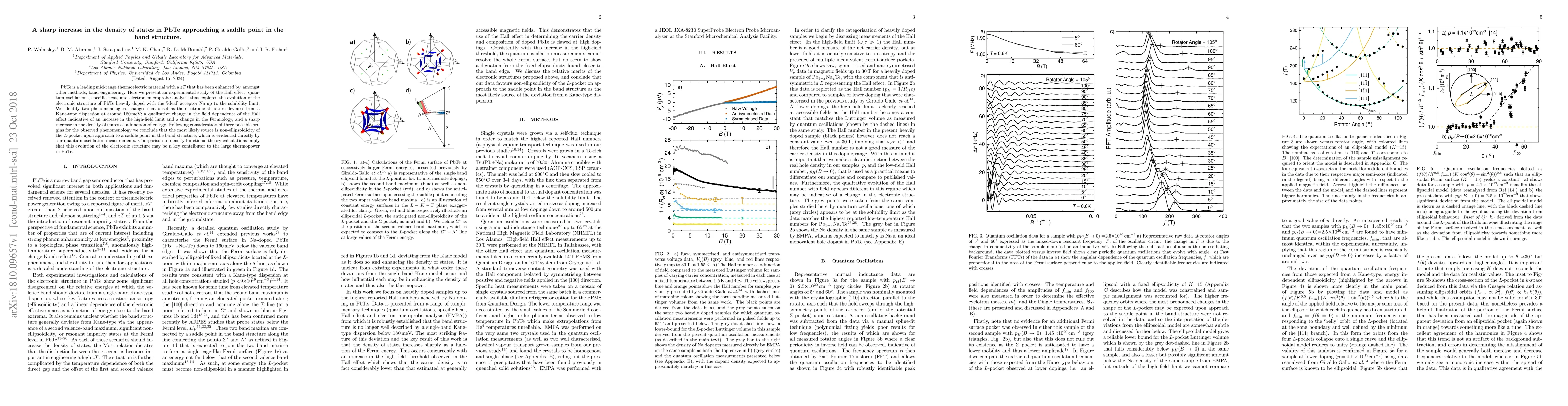 PbTe is a leading mid-range thermoelectric material with a $zT$ that has been enhanced by, amongst other methods, band engineering. Here we present an experimental study of the Hall effect, quantum oscillations, specific heat, and electron microprobe analysis that explores the evolution of the electronic structure of PbTe heavily doped with the `ideal' acceptor Na up to the solubility limit. We identify two phenomenological changes that onset as the electronic structure deviates from a Kane-type dispersion at around 180meV; a qualitative change in the field dependence of the Hall effect indicative of an increase in the high-field limit and a change in the Fermiology, and a sharp increase in the density of states as a function of energy. Following consideration of three possible origins for the observed phenomenology we conclude that the most likely source is non-ellipsoidicity of the $L$-pocket upon approach to a saddle point in the band structure, which is evidenced directly by our quantum oscillation measurements. Comparison to density functional theory calculations imply that this evolution of the electronic structure may be a key contributor to the large thermopower in PbTe.