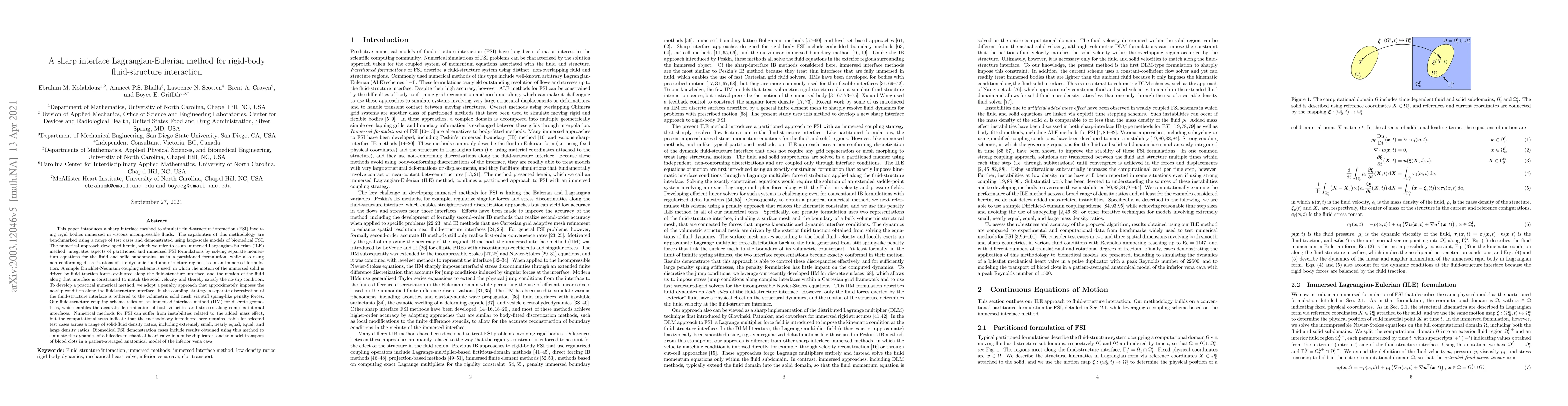 This paper presents a sharp interface Lagrangian-Eulerian method for simulating rigid-body fluid-structure interaction, demonstrating stability across various density ratios and applying it to biomedical cases like heart valve dynamics and blood clot transport. The method integrates partitioned and immersed FSI formulations to accurately model complex fluid-structure interfaces.