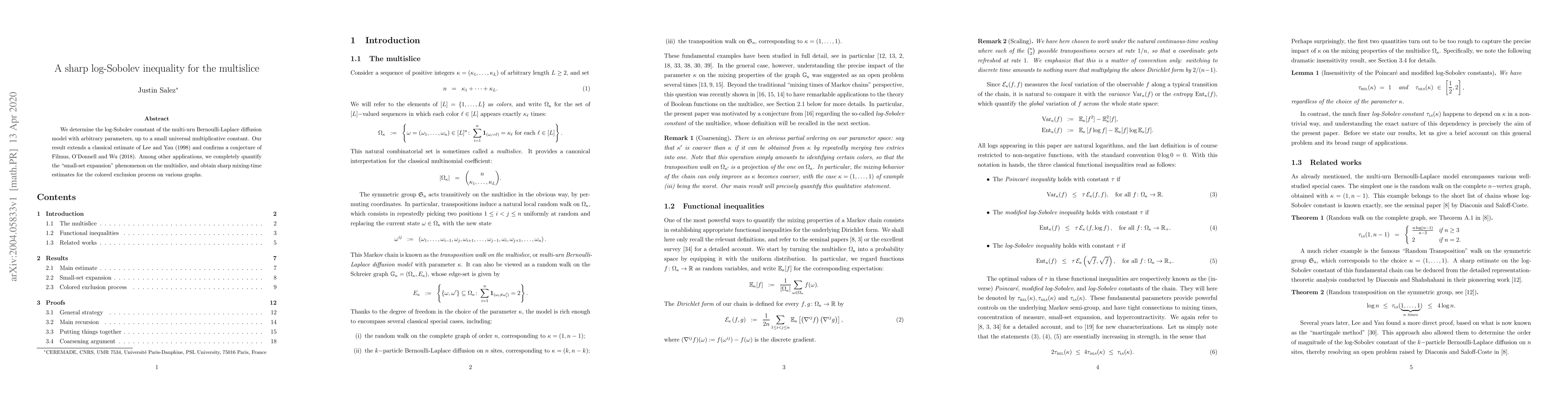 This paper establishes a sharp log-Sobolev inequality for the multislice model, confirming a conjecture and providing quantitative estimates for mixing times in various graph applications.