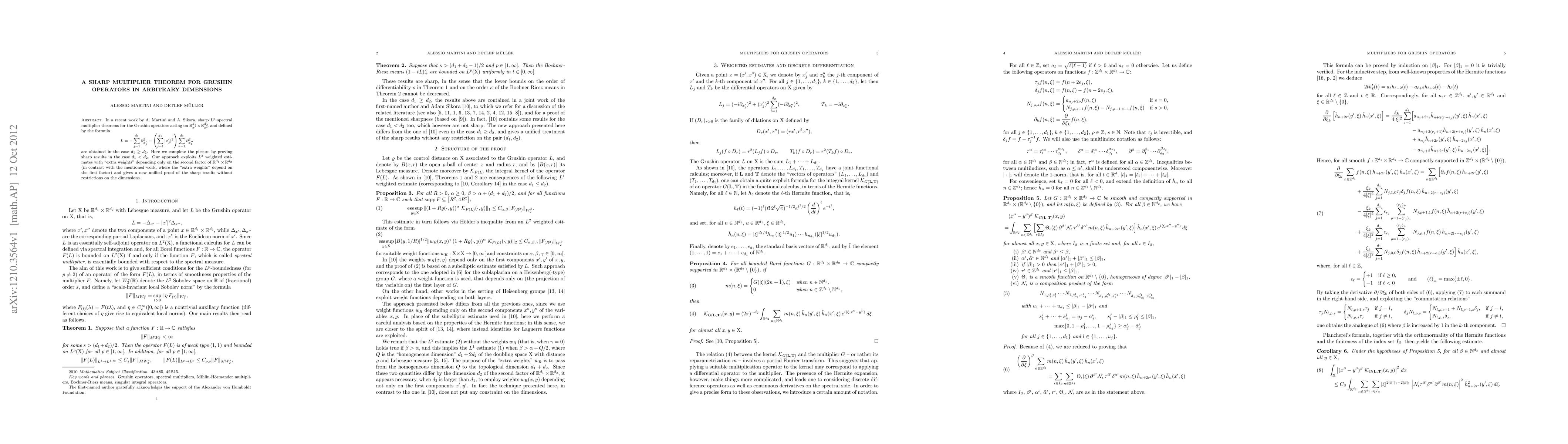 In a recent work by A. Martini and A. Sikora (arXiv:1204.1159), sharp L^p spectral multiplier theorems for the Grushin operators acting on $R^{d_1} \times R^{d_2}$ are obtained in the case $d_1 \geq d_2$. Here we complete the picture by proving sharp results in the case $d_1 < d_2$. Our approach exploits L^2 weighted estimates with "extra weights" depending only on the second factor of $R^{d_1} \times R^{d_2}$ (in contrast with the mentioned work, where the "extra weights" depend on the first factor) and gives a new unified proof of the sharp results without restrictions on the dimensions.