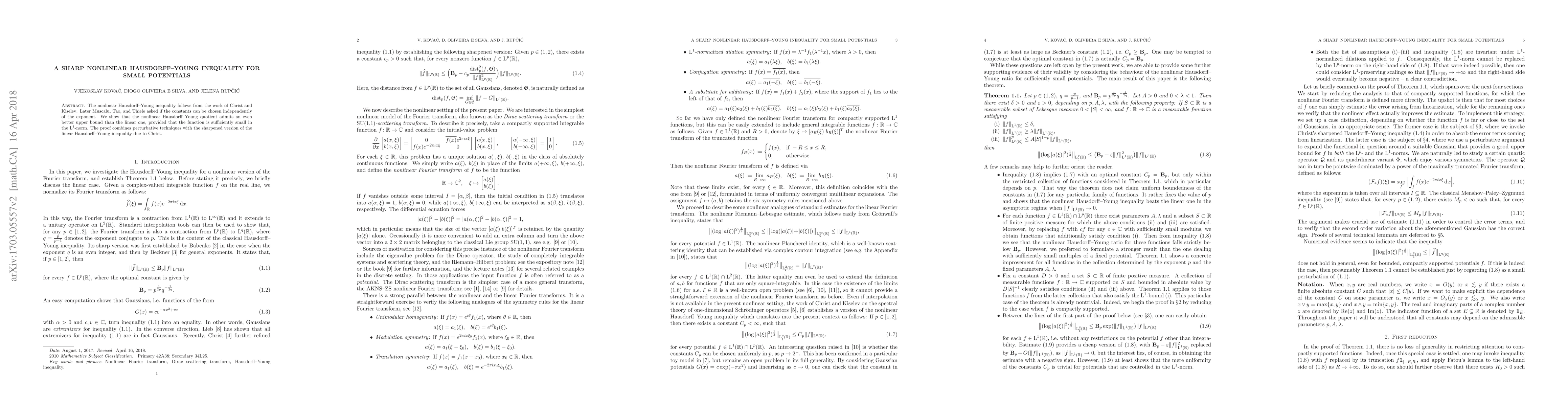 The paper establishes a sharper nonlinear Hausdorff-Young inequality for functions small in the $L^1$ norm, improving upon the linear version, using perturbative methods combined with a refined linear inequality by Christ.