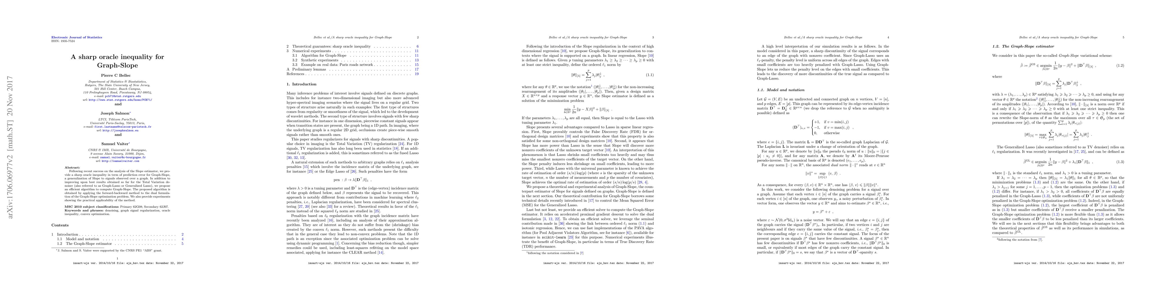 This paper presents a sharp oracle inequality for the Graph-Slope estimator, improving upon existing results for the Total Variation denoiser. It introduces an efficient algorithm based on the forward-backward method for computing Graph-Slope and includes experimental validation of its effectiveness.