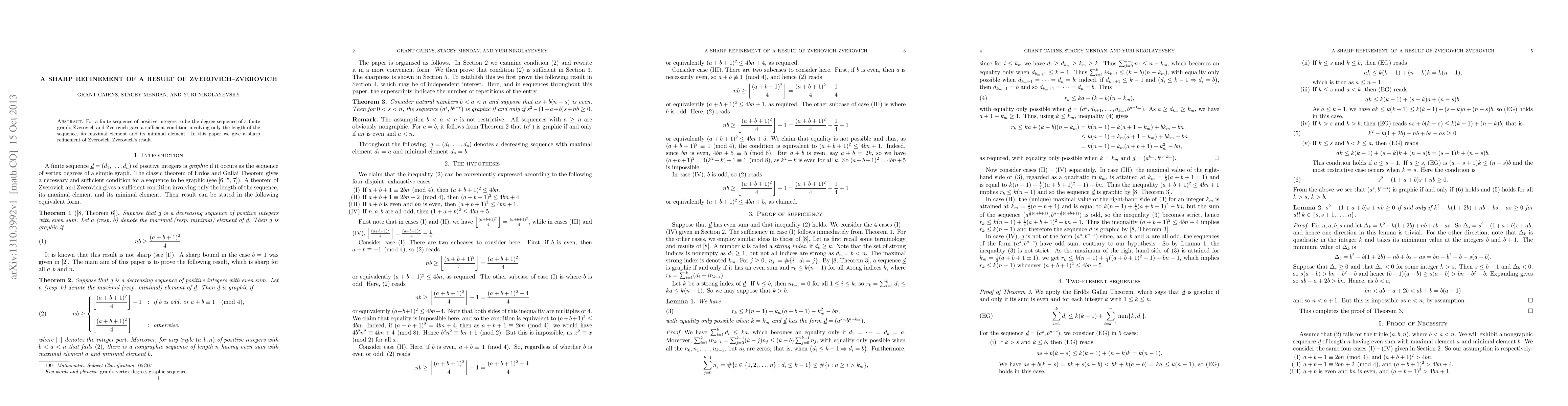 For a finite sequence of positive integers to be the degree sequence of a finite graph, Zverovich and Zverovich gave a sufficient condition involving only the length of the sequence, its maximal element and its minimal element. In this paper we give a sharp refinement of Zverovich--Zverovich's result.