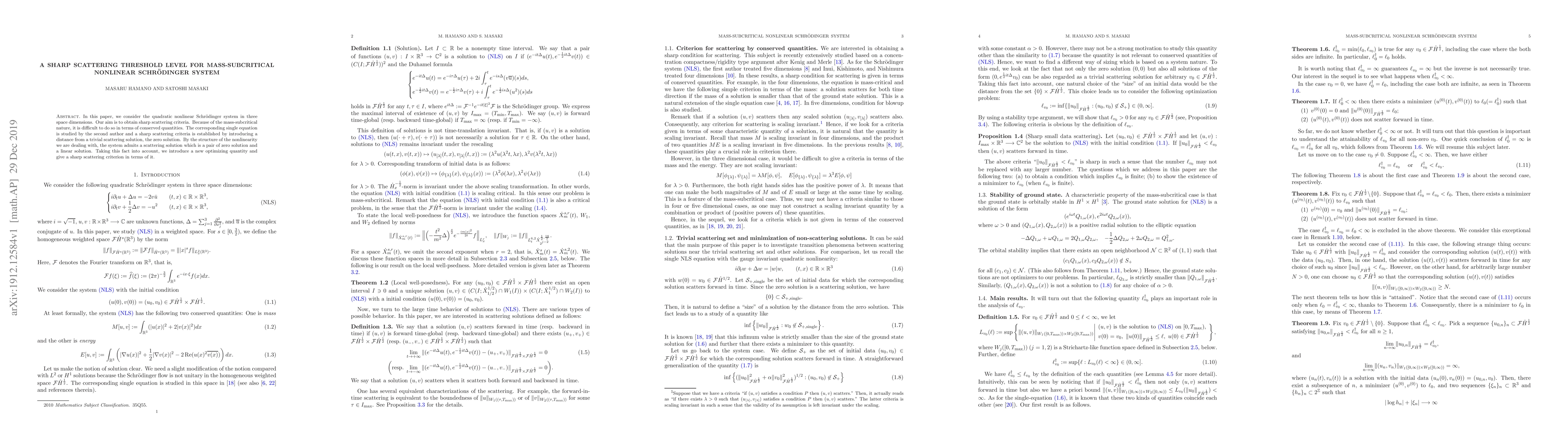 This paper establishes sharp scattering criteria for a mass-subcritical quadratic nonlinear Schrödinger system in three dimensions. It introduces a new optimizing quantity to account for the system's nonlinearity, providing a sharp scattering threshold based on a distance from a trivial scattering solution.