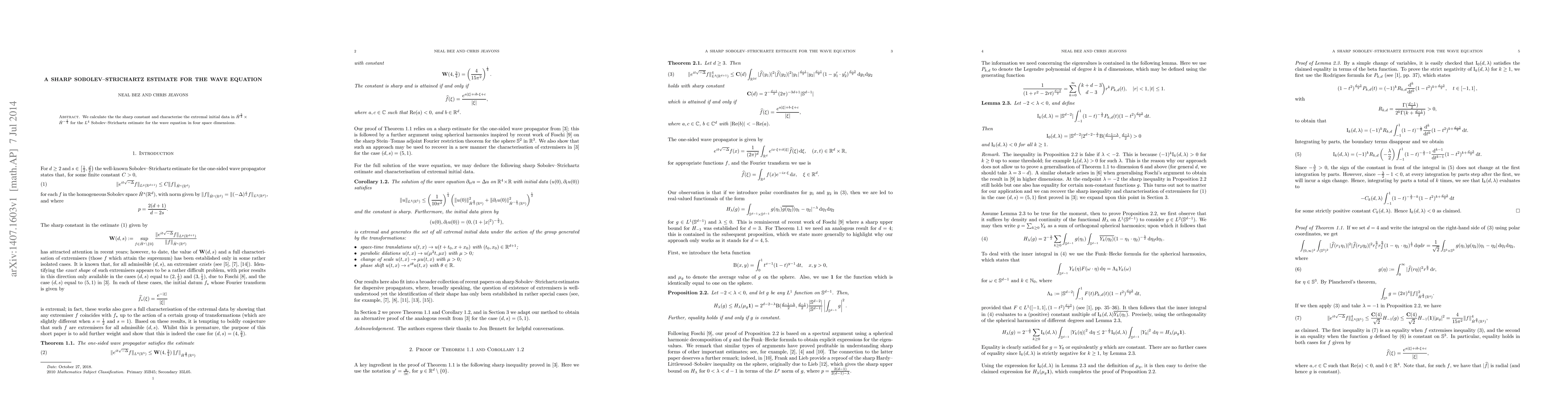 We calculate the the sharp constant and characterise the extremal initial data in $\dot{H}^{\frac{3}{4}}\times\dot{H}^{-\frac{1}{4}}$ for the $L^4$ Sobolev--Strichartz estimate for the wave equation in four space dimensions.