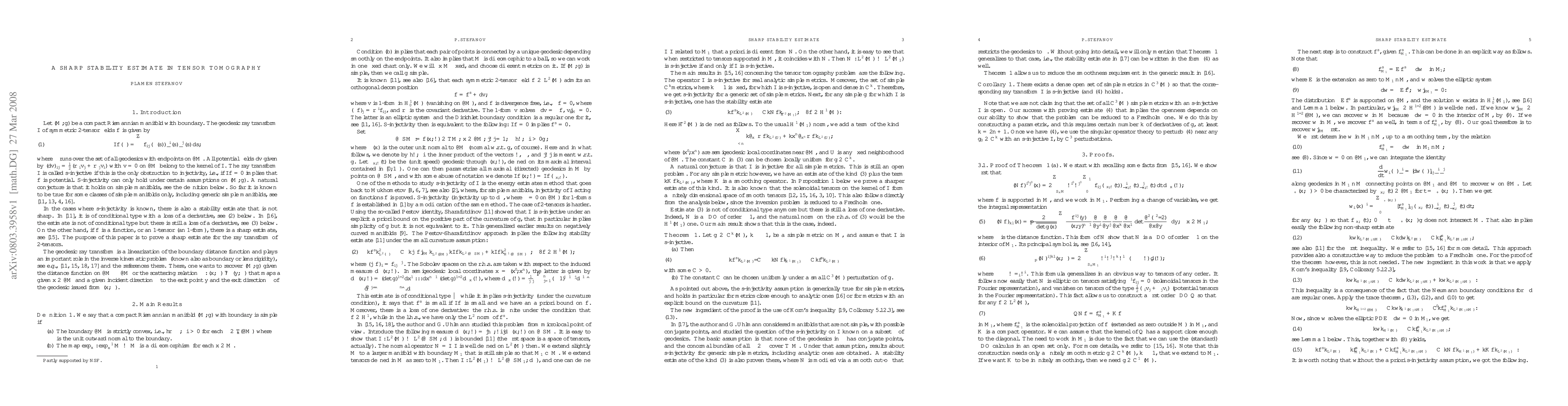 We prove a sharp stability estimate for the problem of reconstructing a symmetric 2-tensor from its integrals along all maximal geodesics on a simple manifold.