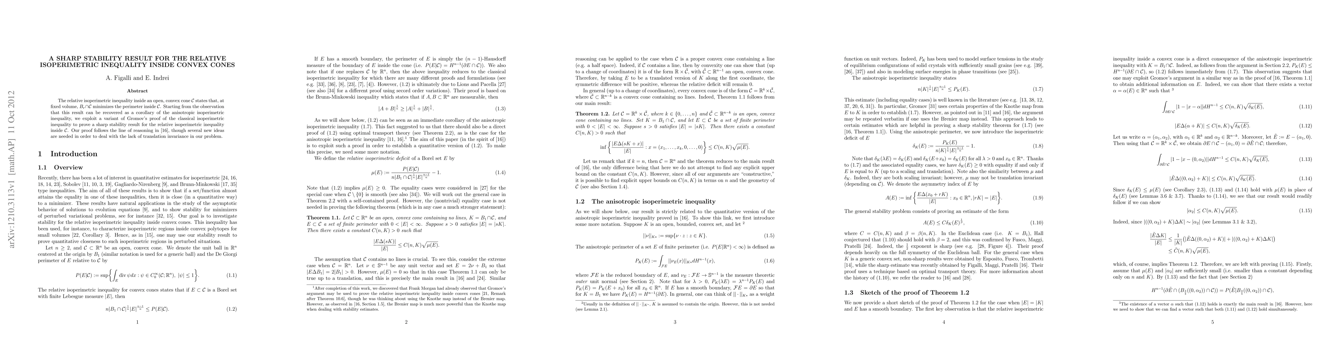 This paper proves a sharp stability result for the relative isoperimetric inequality within open, convex cones, showing that shapes with minimal perimeter for a fixed volume can be closely approximated by the optimal shape. The proof leverages Gromov's classical isoperimetric inequality and introduces new ideas to address the non-translation-invariant nature of the problem.