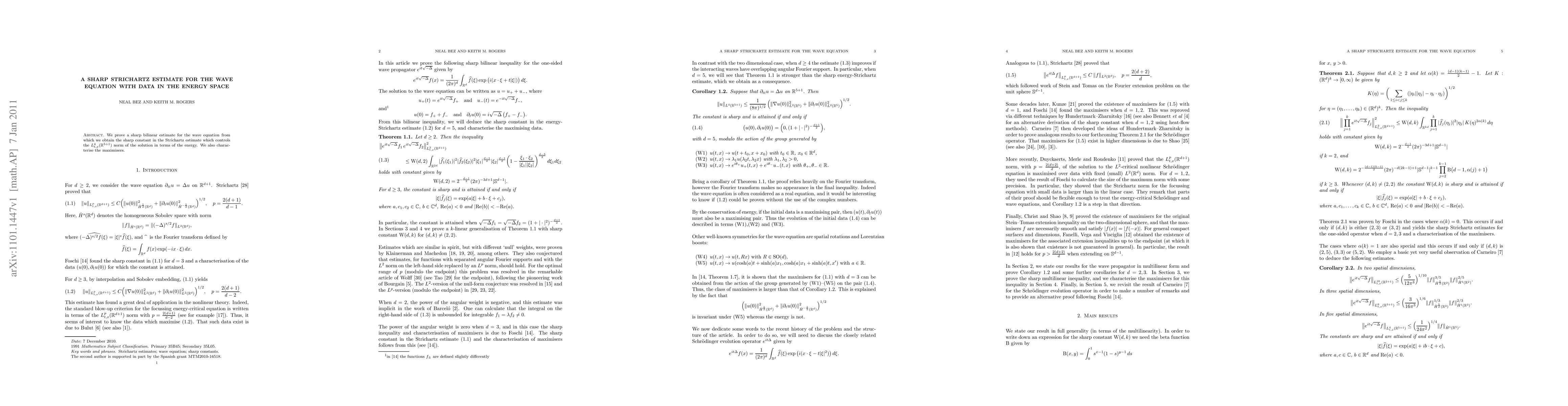Summary: The paper proves a sharp bilinear estimate for the wave equation, deriving the optimal constant in the Strichartz estimate for the $L^4_{t,x}(\R^{5+1})$ norm of the solution, and identifies the functions that achieve this maximum.