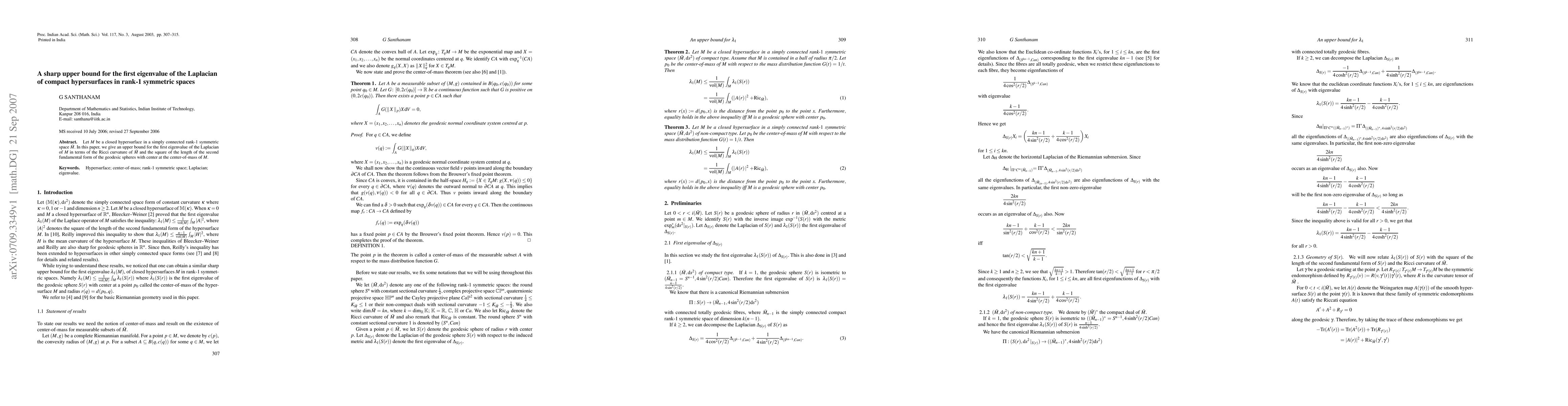 This paper establishes a sharp upper bound for the first eigenvalue of the Laplacian on a closed hypersurface $M$ within a simply connected rank-1 symmetric space, expressed in terms of the Ricci curvature of the ambient space and the squared length of the second fundamental form of geodesic spheres centered at $M$'s center-of-mass.