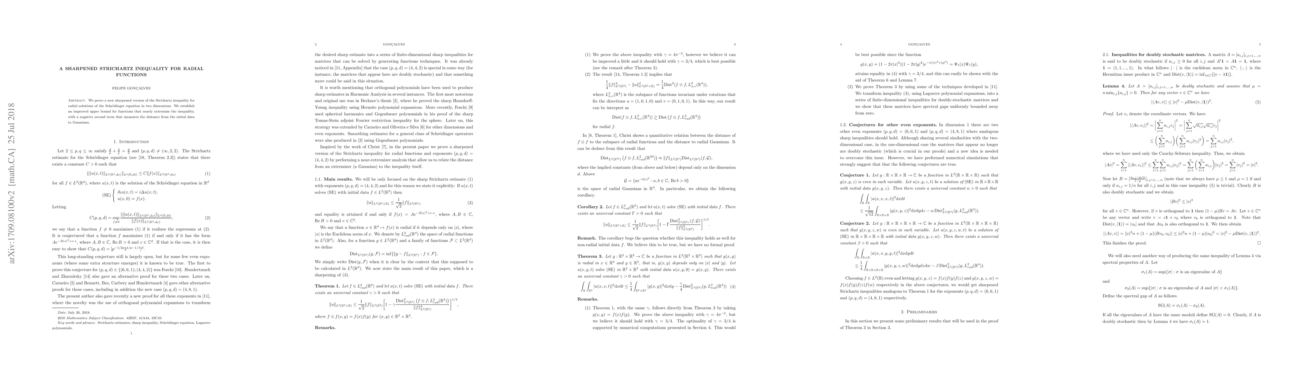 The paper proves a sharpened Strichartz inequality for radial solutions of the Schrödinger equation in $\mathbb{R}^2 \times \mathbb{R}$ using Laguerre polynomials and associated orthogonal bases.