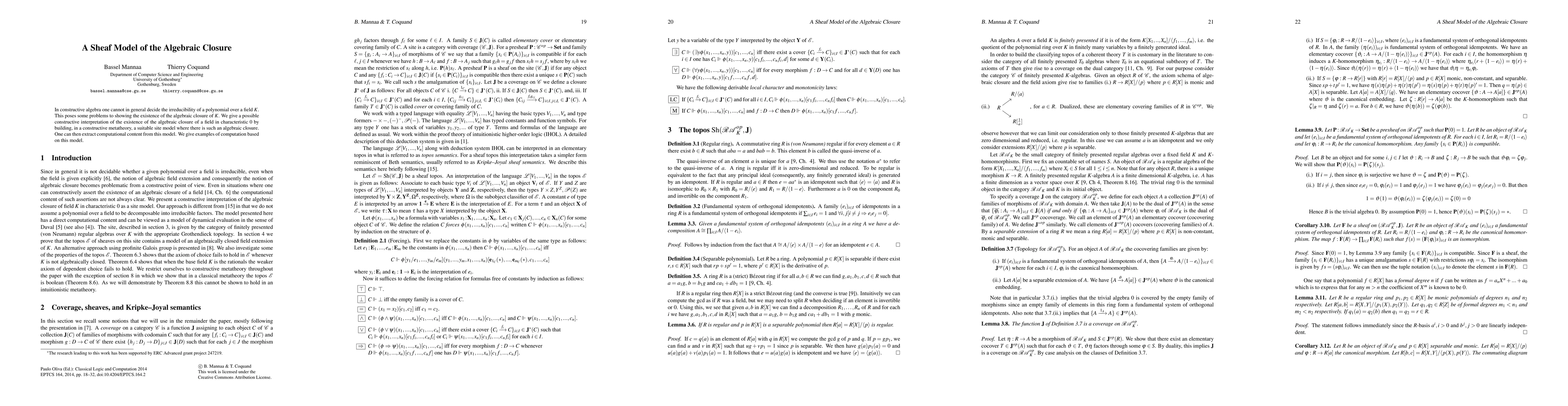 In constructive algebra one cannot in general decide the irreducibility of a polynomial over a field K. This poses some problems to showing the existence of the algebraic closure of K. We give a possible constructive interpretation of the existence of the algebraic closure of a field in characteristic 0 by building, in a constructive metatheory, a suitable site model where there is such an algebraic closure. One can then extract computational content from this model. We give examples of computation based on this model.