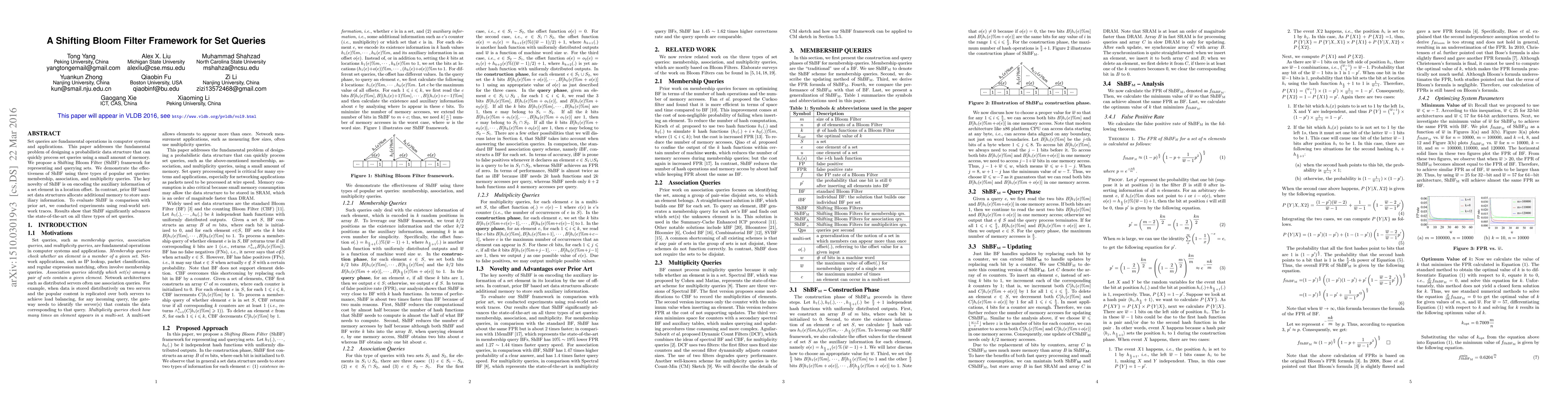 The paper proposes a Shifting Bloom Filter (ShBF) framework for set queries, demonstrating its effectiveness through membership, association, and multiplicity queries. The framework encodes auxiliary information using location offsets, reducing additional memory allocation compared to prior Bloom Filter (BF) based set data structures.