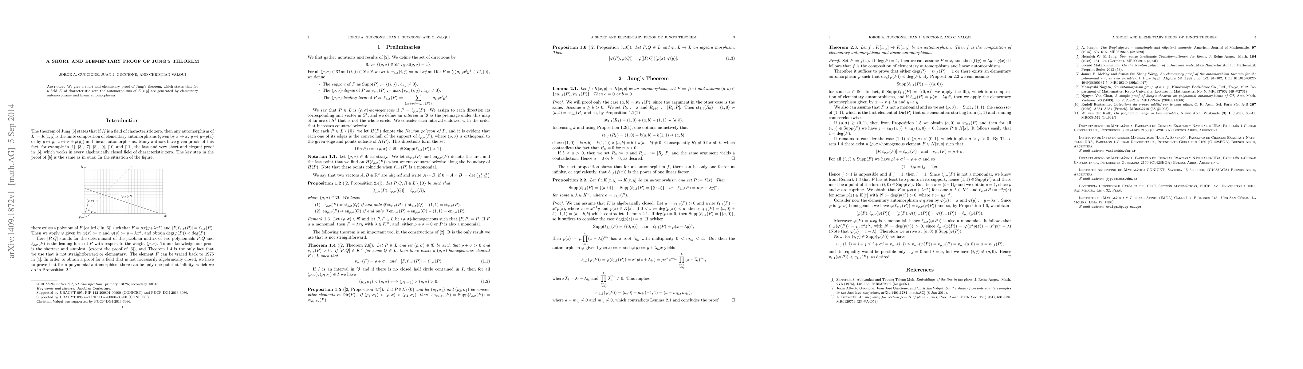 The paper presents a short and elementary proof of Jung's theorem, which concerns automorphisms of polynomial rings over fields of characteristic zero, using preliminary notations and results from previous works.