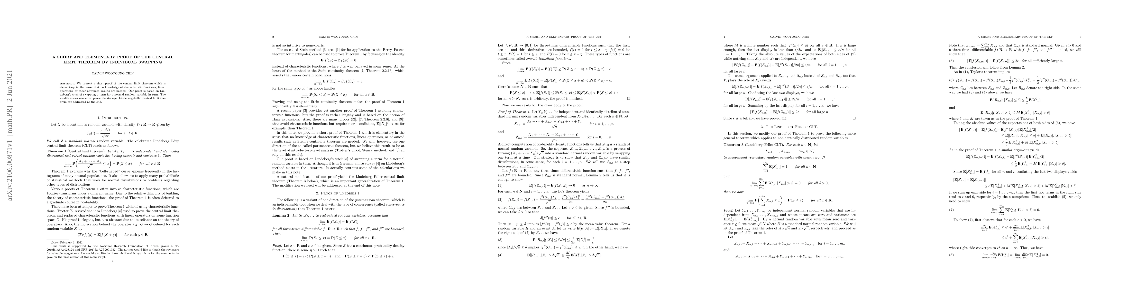 This paper provides an accessible proof of the central limit theorem, avoiding advanced mathematical concepts, and utilizes Lindeberg's swapping technique. It also briefly discusses modifications for the stronger Lindeberg-Feller central limit theorem.
