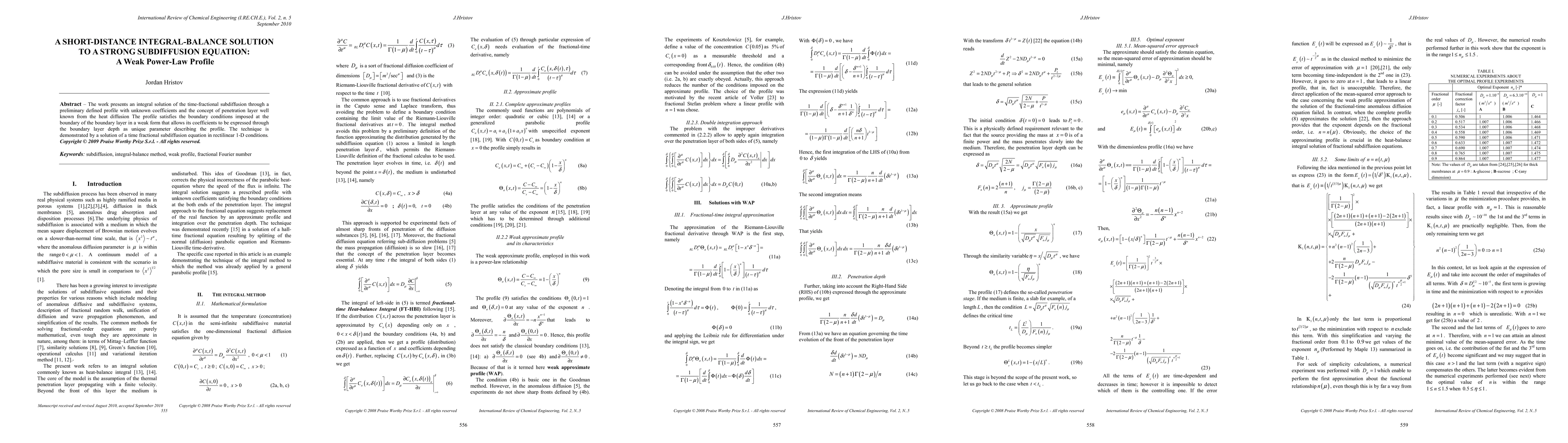 The research paper proposes an integral solution for a time-fractional subdiffusion equation using a preliminary defined profile with unknown coefficients. It introduces a penetration layer concept similar to heat diffusion, expressing profile coefficients via a unique boundary layer depth parameter. The method is applied to solve a 1-D time fractional subdiffusion equation.
