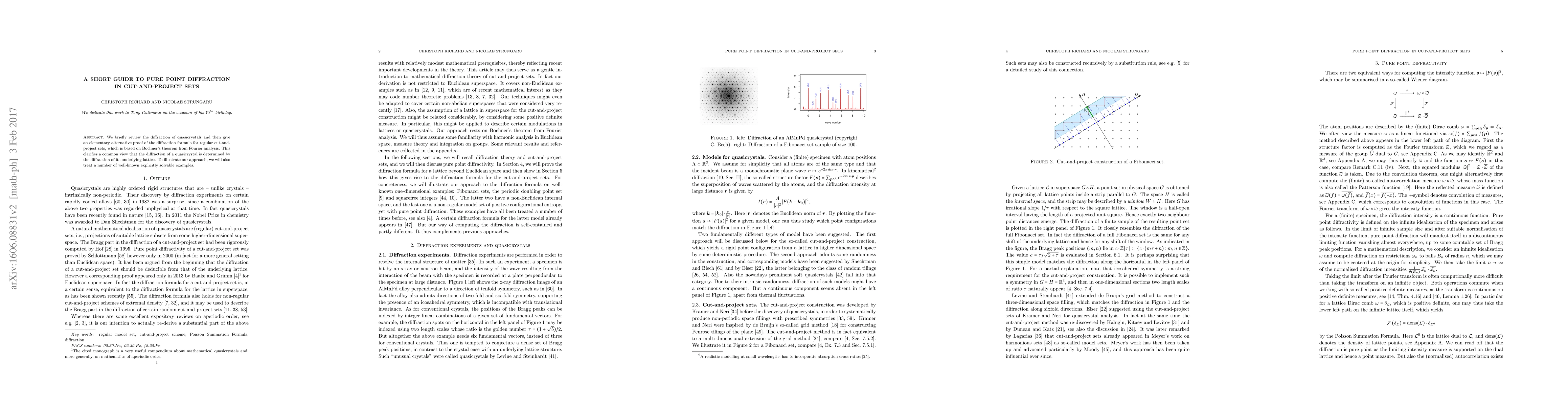 We briefly review the diffraction of quasicrystals and then give an elementary alternative proof of the diffraction formula for regular cut-and-project sets, which is based on Bochner's theorem from Fourier analysis. This clarifies a common view that the diffraction of a quasicrystal is determined by the diffraction of its underlying lattice. To illustrate our approach, we will also treat a number of well-known explicitly solvable examples.