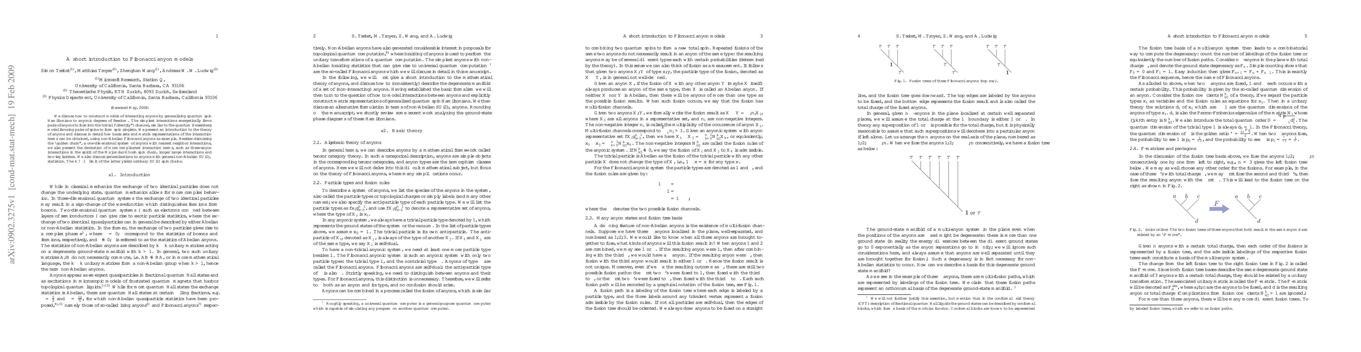 This paper introduces Fibonacci anyon models, detailing how to generalize quantum spin Hamiltonians to anyonic systems. It explores the fusion of anyons into the trivial channel and provides a comprehensive overview of constructing basis sets and matrix representations for these interactions, using non-Abelian Fibonacci anyons as a case study.