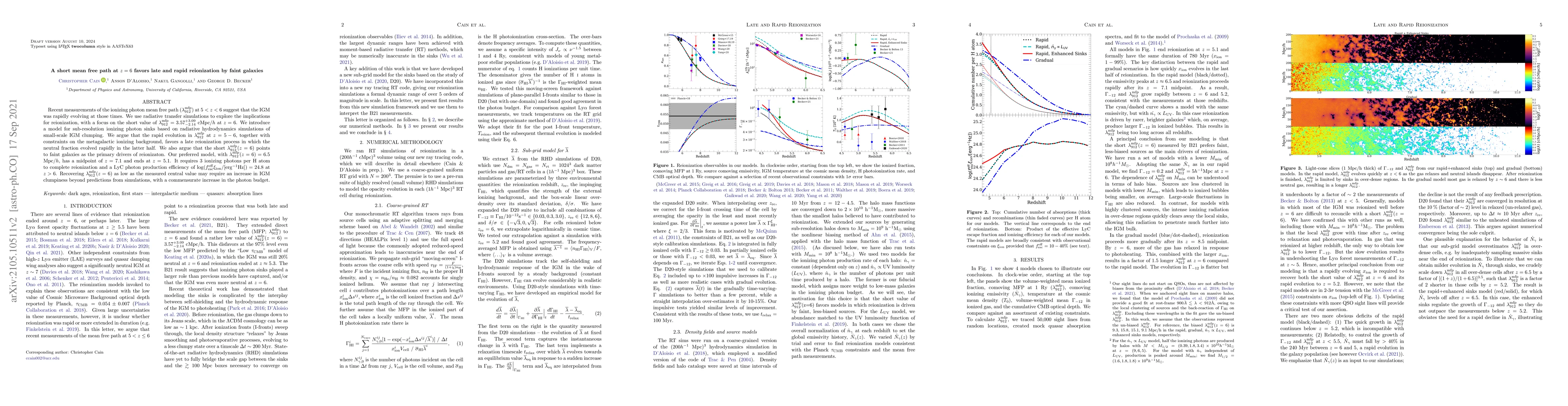 This paper argues that a short mean free path of ionizing photons at $z=6$ suggests late and rapid reionization driven primarily by faint galaxies. The study uses simulations to show that the rapid evolution in the mean free path at $z=5-6$ favors a late reionization process, with a midpoint around $z=7.1$ and completion by $z=5.1$.