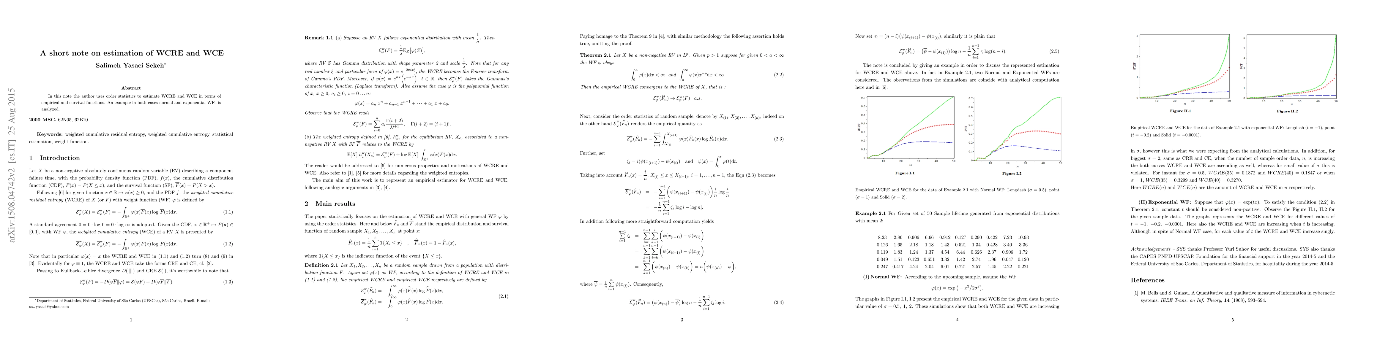 In this note the author uses order statistics to estimate WCRE and WCE in terms of empirical and survival functions. An example in both cases normal and exponential WFs is analyzed.