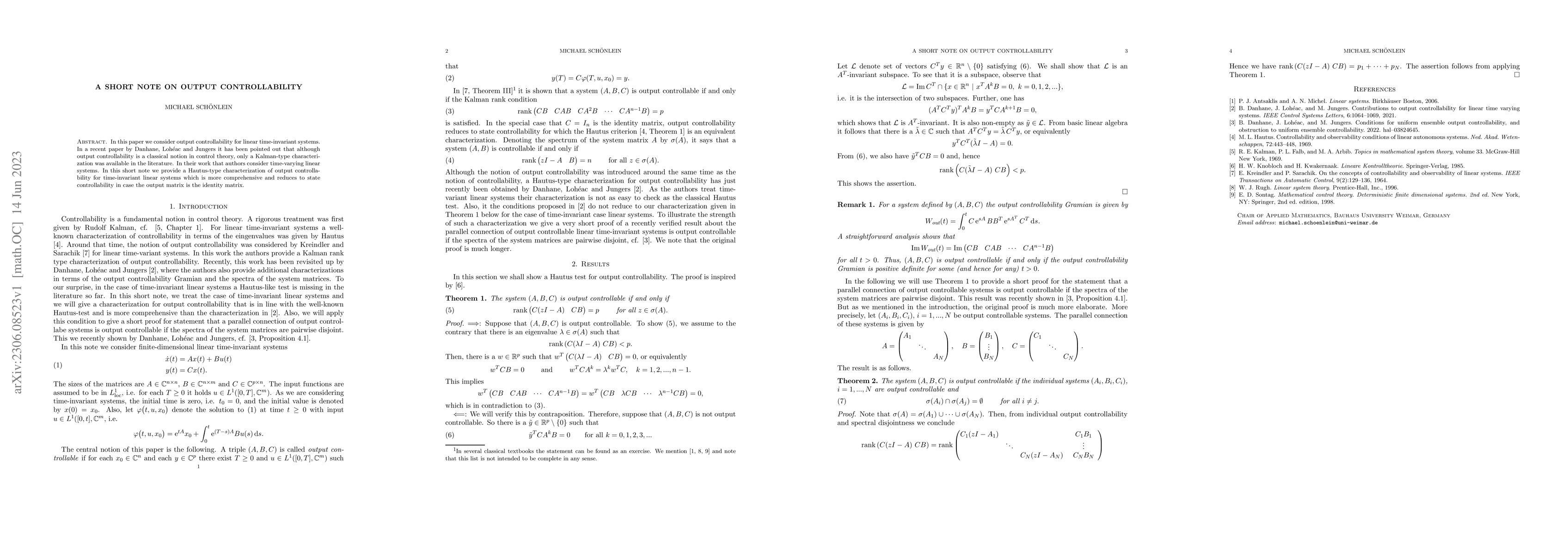 This paper presents a Hautus-type characterization for output controllability in linear time-invariant systems, offering a more comprehensive approach than the existing Kalman-type characterization, and reducing to state controllability when the output matrix is the identity.