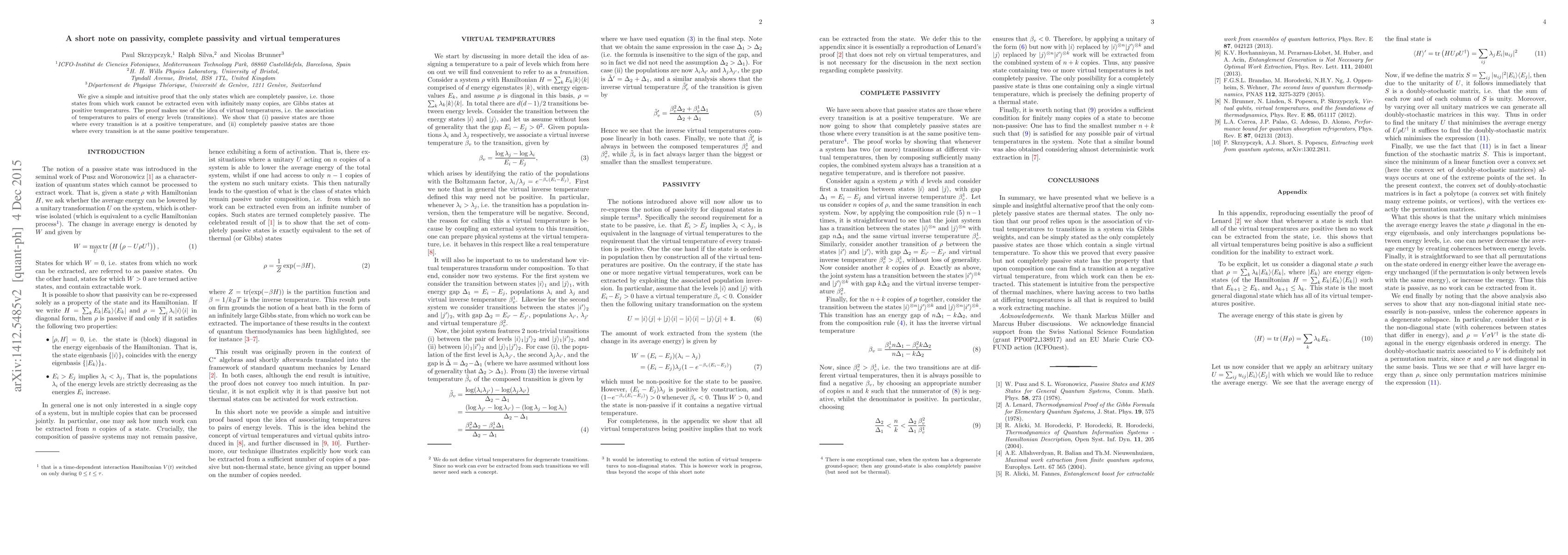 We give a simple and intuitive proof that the only states which are completely passive, i.e. those states from which work cannot be extracted even with infinitely many copies, are Gibbs states at positive temperatures. The proof makes use of the idea of virtual temperatures, i.e. the association of temperatures to pairs of energy levels (transitions). We show that (i) passive states are those where every transition is at a positive temperature, and (ii) completely passive states are those where every transition is at the same positive temperature.