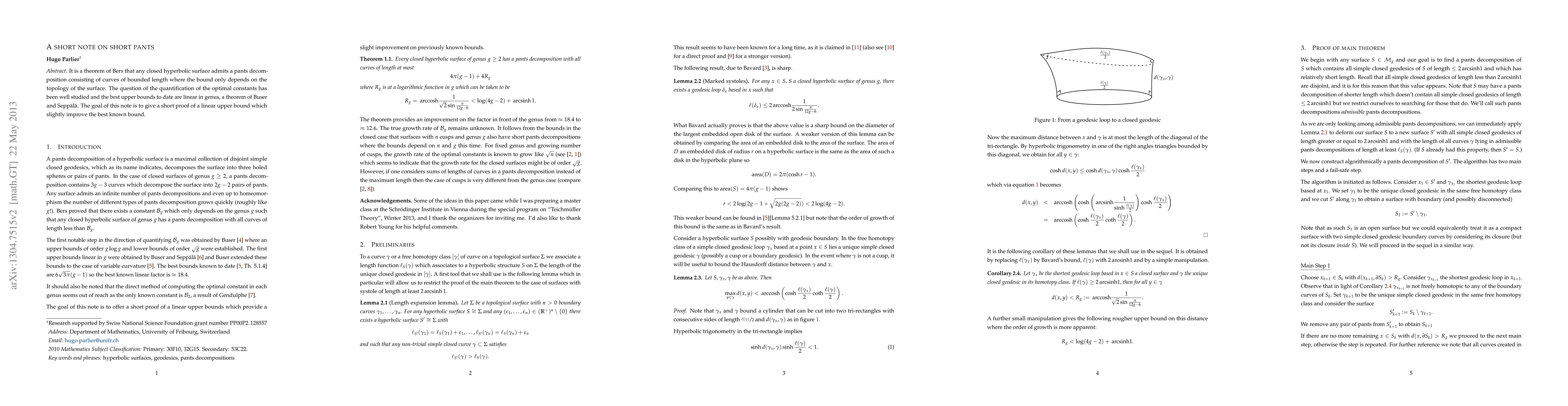 This paper provides a concise proof for a theorem by Bers that any closed hyperbolic surface can be decomposed into "pants" curves with lengths bounded by a constant dependent on the surface's topology. It slightly improves the best-known linear upper bounds for these lengths, which were previously established by Buser and Seppälä.