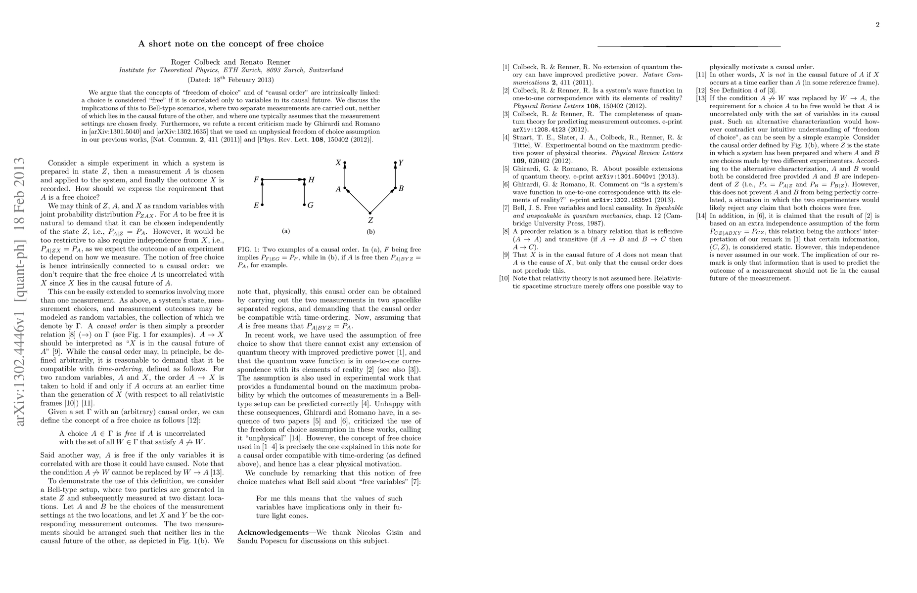 We argue that the concepts of "freedom of choice" and of "causal order" are intrinsically linked: a choice is considered "free" if it is correlated only to variables in its causal future. We discuss the implications of this to Bell-type scenarios, where two separate measurements are carried out, neither of which lies in the causal future of the other, and where one typically assumes that the measurement settings are chosen freely. Furthermore, we refute a recent criticism made by Ghirardi and Romano in [arXiv:1301.5040] and [arXiv:1302.1635] that we used an unphysical freedom of choice assumption in our previous works, [Nat. Commun. 2, 411 (2011)] and [Phys. Rev. Lett. 108, 150402 (2012)].