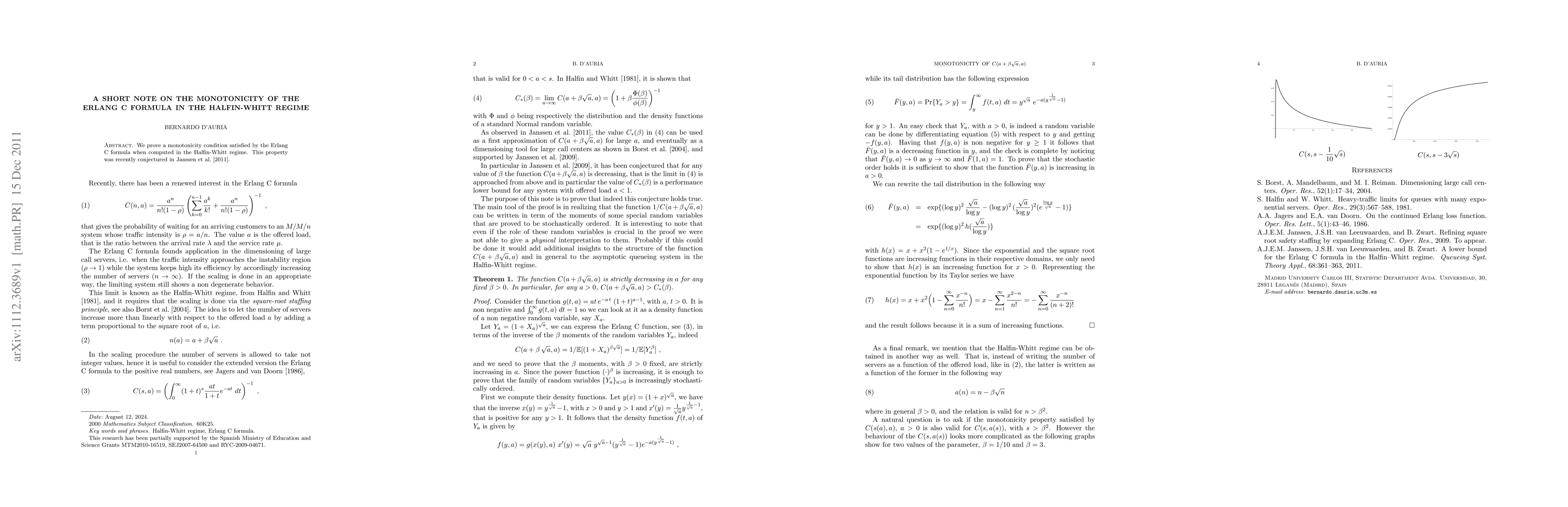 Researchers prove a condition ensuring the Erlang C formula behaves predictably in certain network scenarios, resolving a conjecture from 2011.