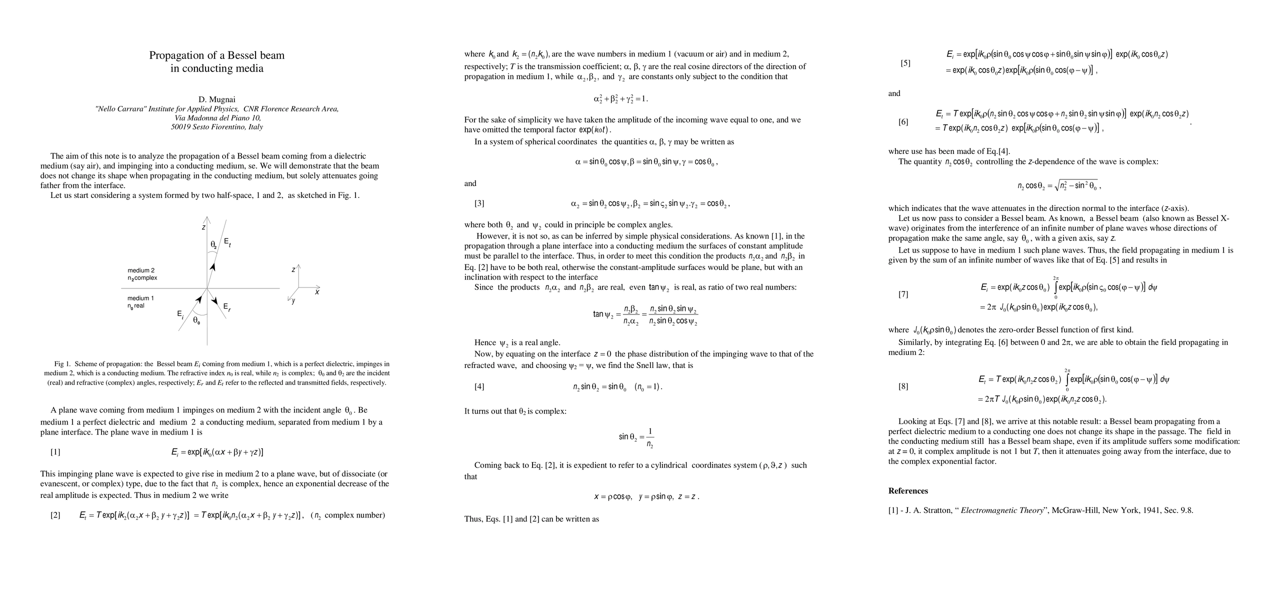 Two-line Summary: This paper analyzes the propagation of Bessel beams in conducting media, specifically under normal incidence from a perfect dielectric. The study reveals that the Bessel beam maintains its shape remarkably, even when refracted into the conducting medium, suggesting potential applications for advanced ground penetrating radar systems.