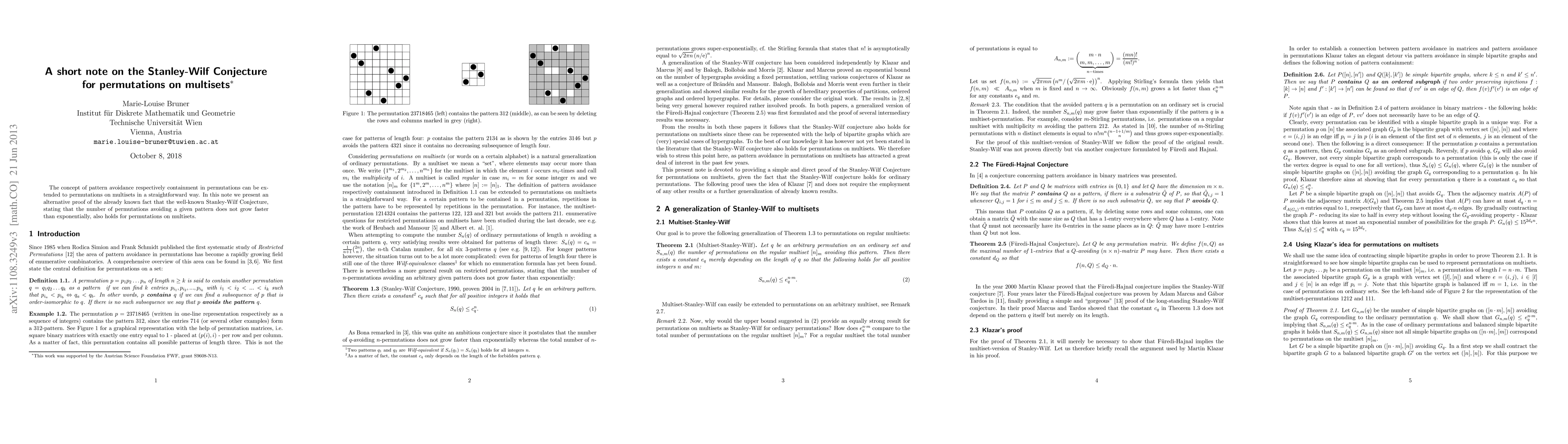 This paper provides a direct proof that the Stanley-Wilf Conjecture, which posits that the number of permutations avoiding a given pattern does not grow faster than exponentially, applies to permutations on multisets. It extends the concept of pattern avoidance to this context.