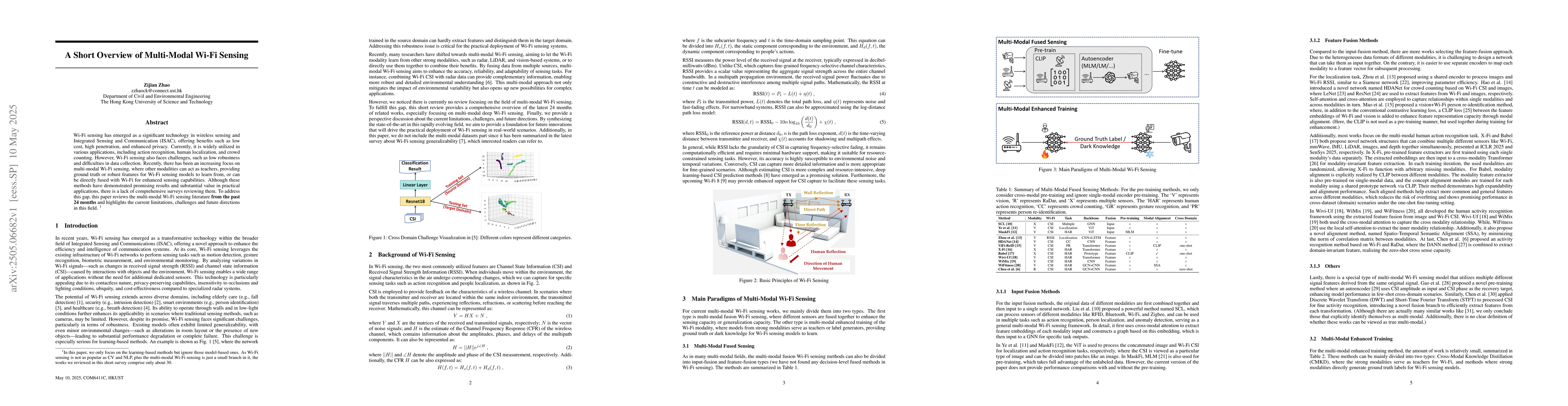 This work stands out by specifically targeting and summarizing the progress in multi-modal Wi-Fi sensing over the past 24 months, an area that lacks comprehensive review.